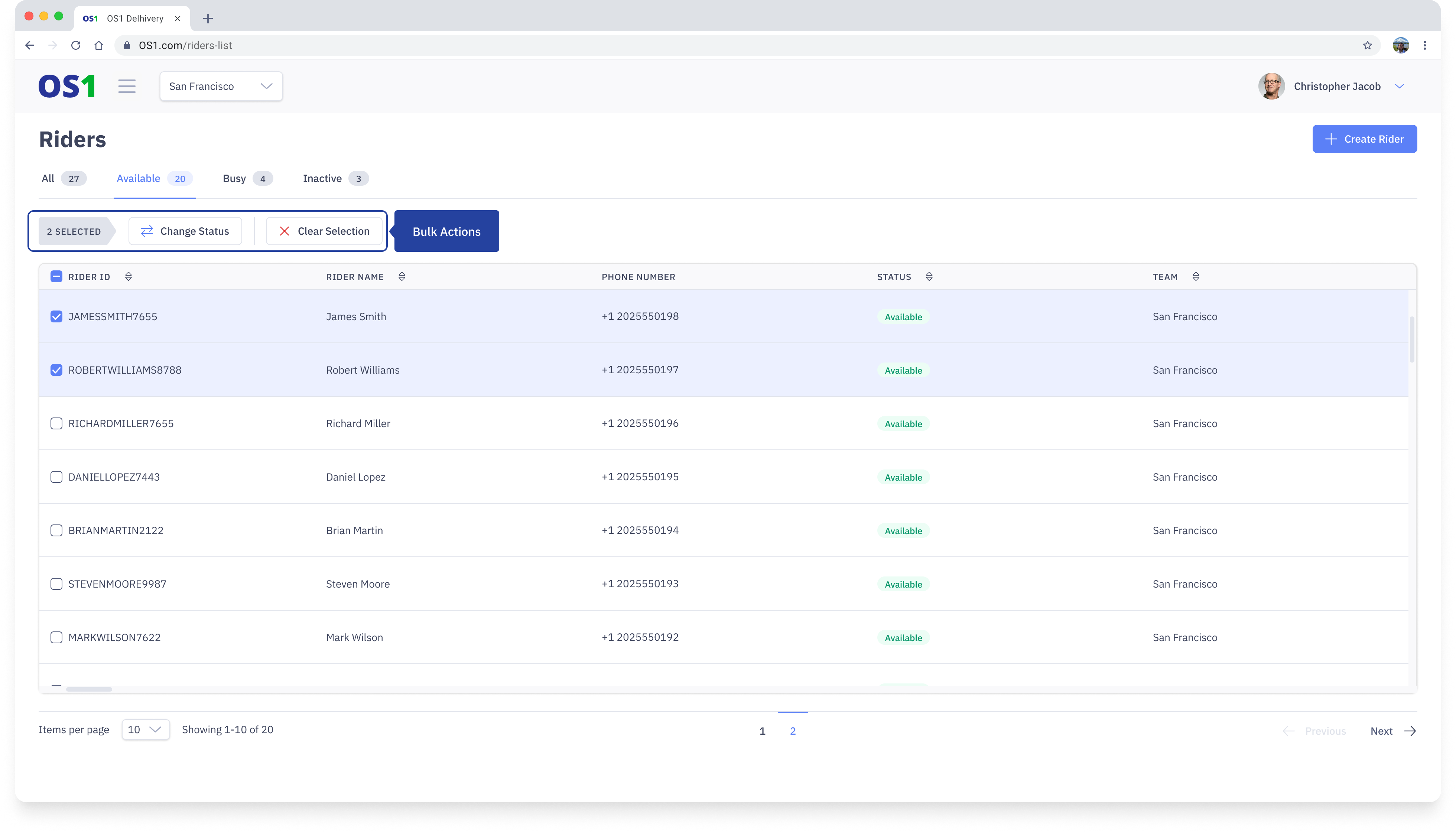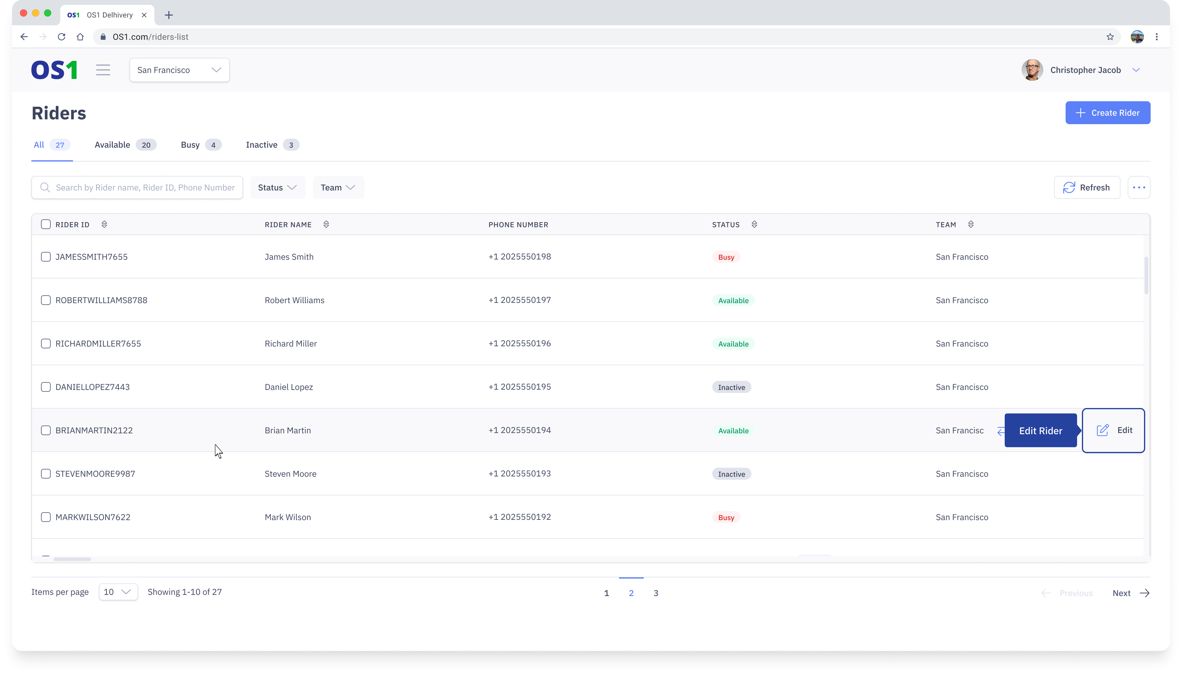 - Inactive: This status means the Rider is unavailable and cannot be assigned to any task.