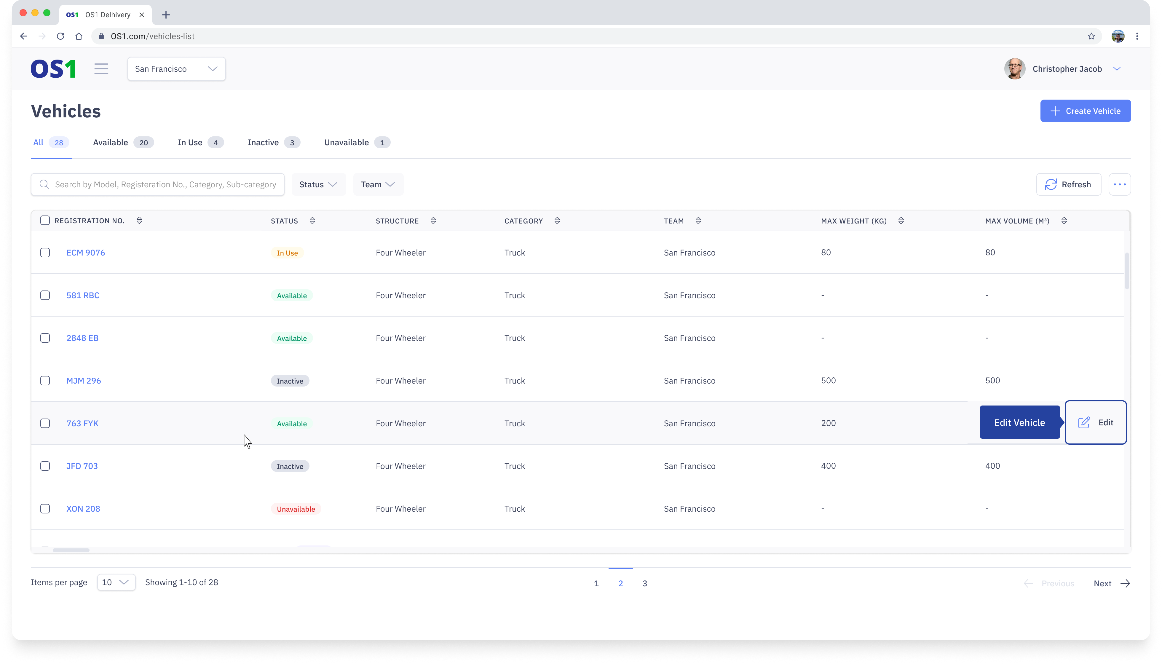 - Click on the Edit button on the top right corner of any Vehicle Details page