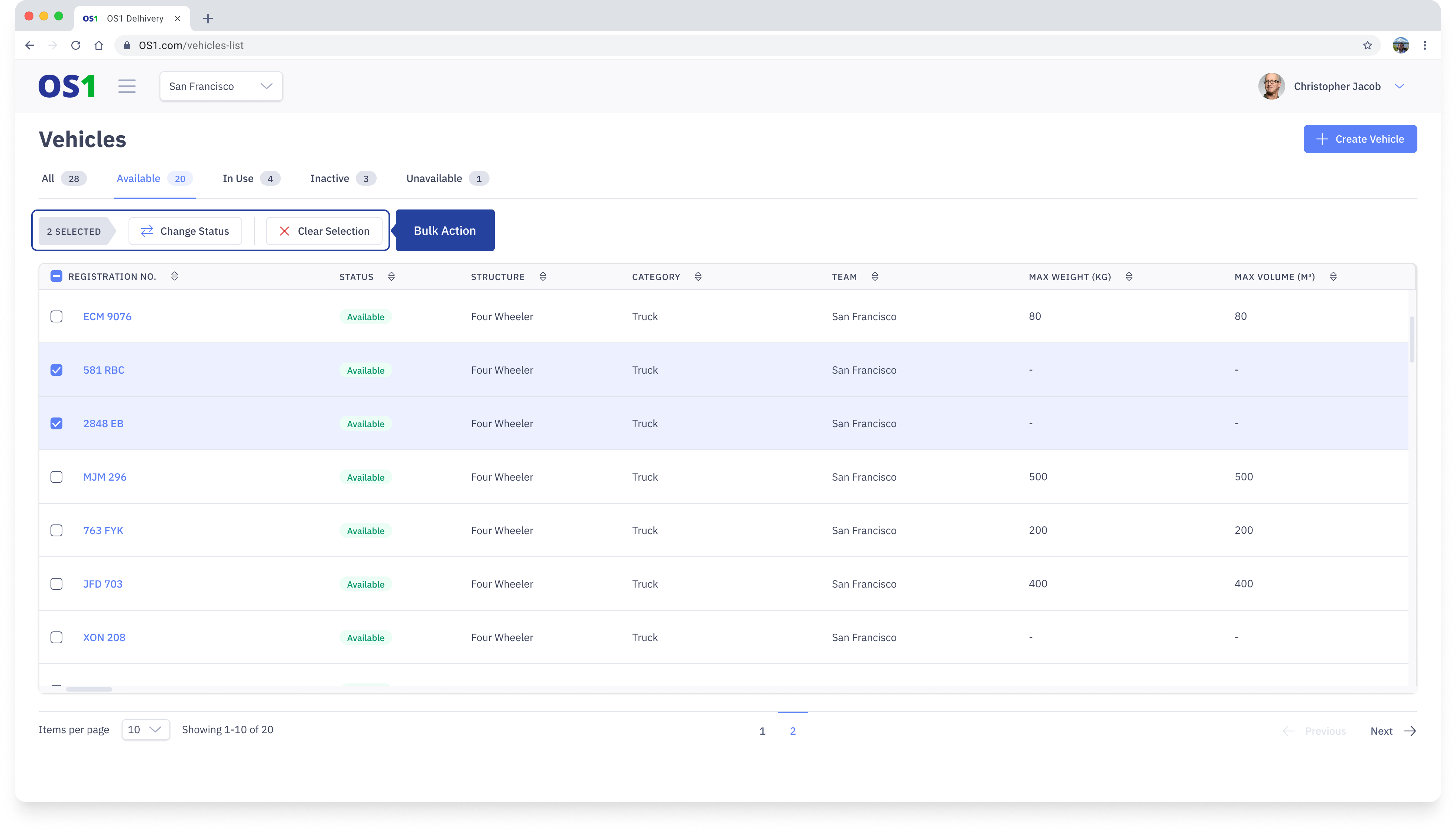 - Creating new Vehicles using the “Create Vehicle” button