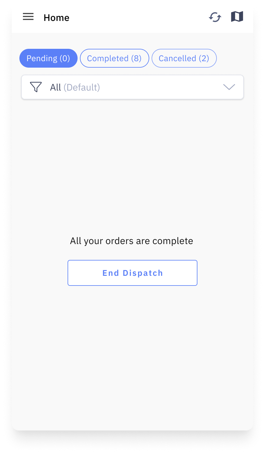 Once all the tasks are complete, the driver needs to end the dispatch. This is important as any custody transfer (in terms of the cash collected or the undelivered orders) will happen during the End Dispatch stage.