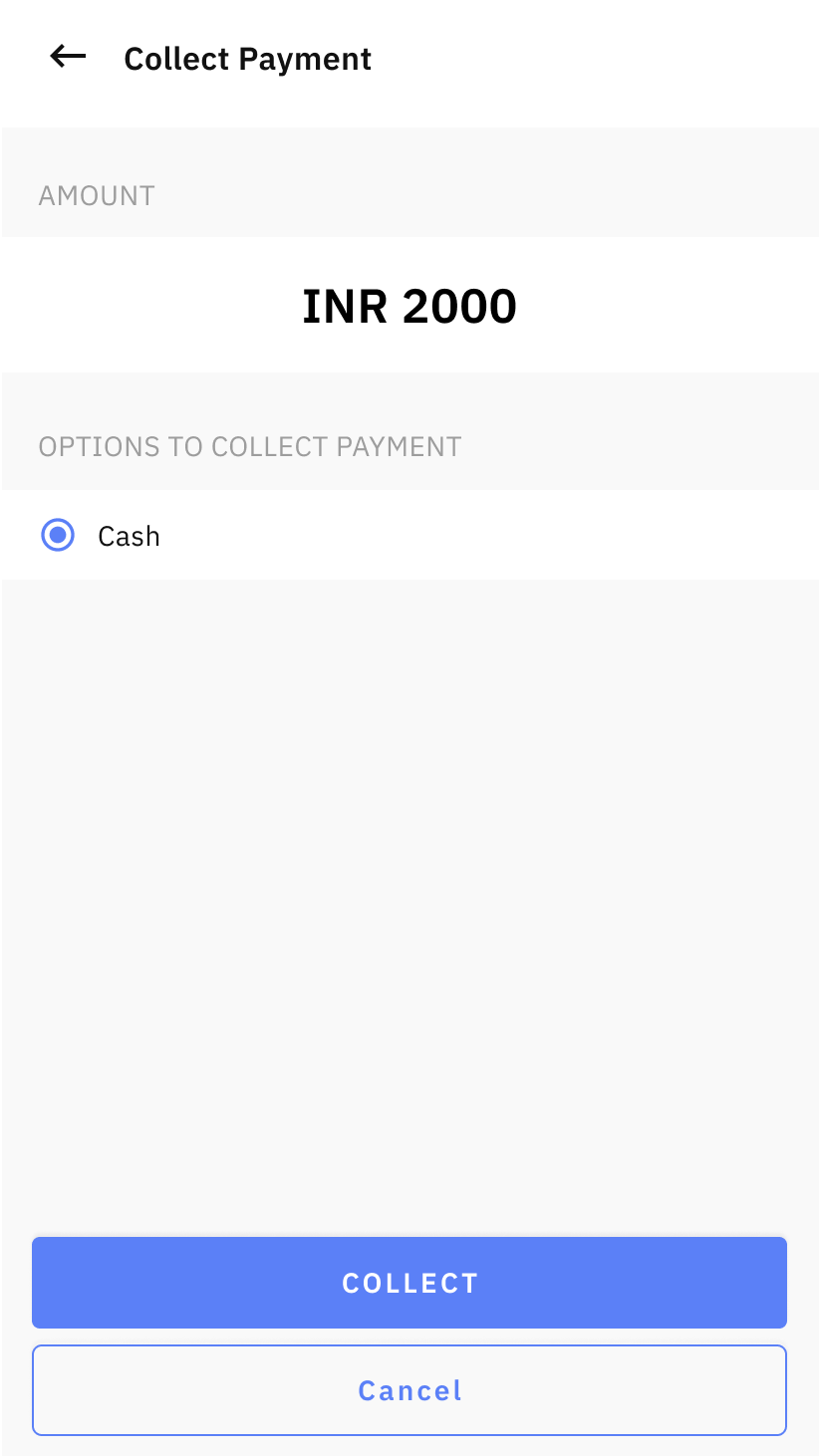 - If the order is a Collect on Delhivery, then the collect payment screen will show up. Once the payment confirmation is received the driver will have to get the signature of the consignee as proof of delivery. Once the signature is captured the driver can complete the drop by clicking on "Confirm". This completes the drop task.