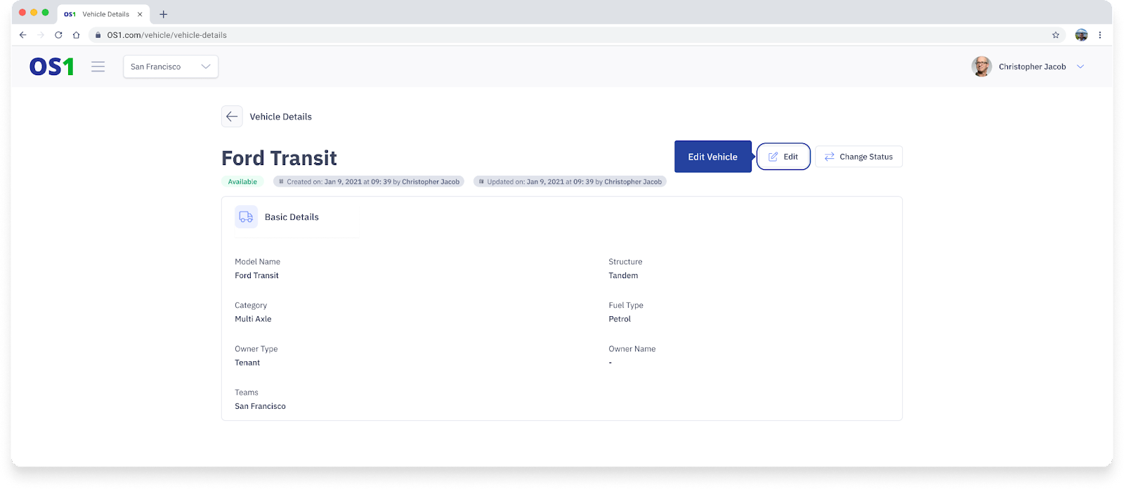 - Click on the Edit button on the top right corner of any Vehicle Details page