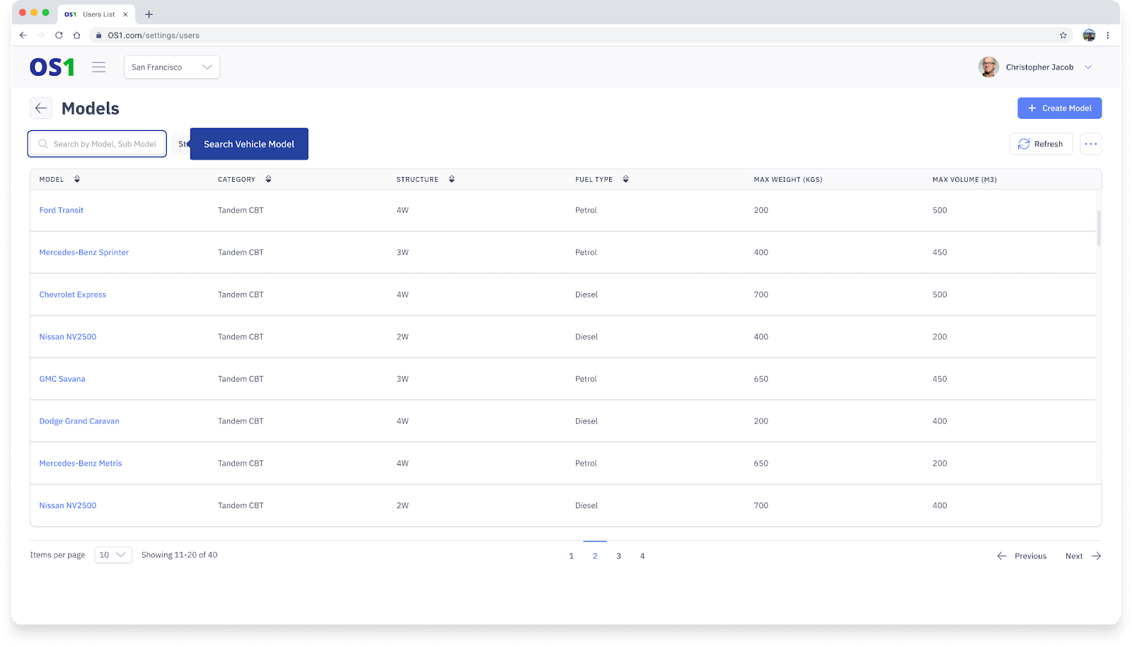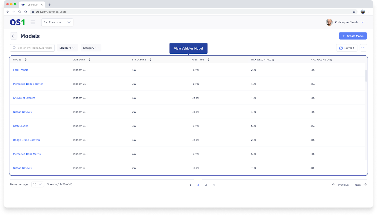 Once you have created a Vehicle Model, you can see the list of all the created Vehicle Models on the Vehicle Model Listing page.