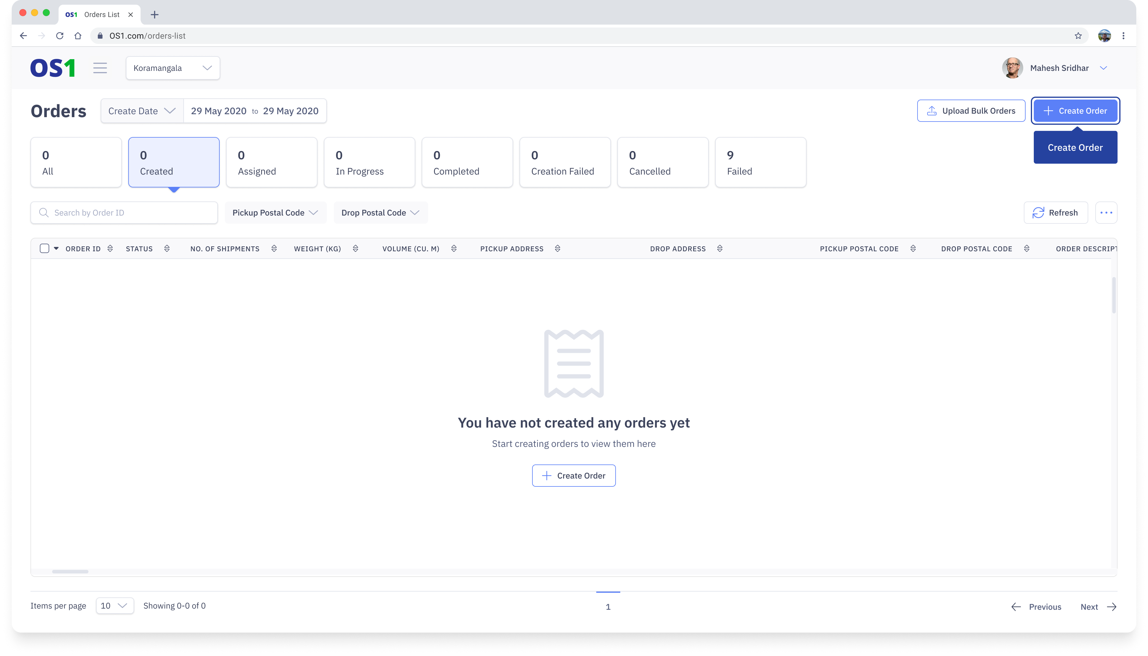 Note: Click the refresh button on the Order Listing Page to refresh the order table if you are not able to see the newly created orders